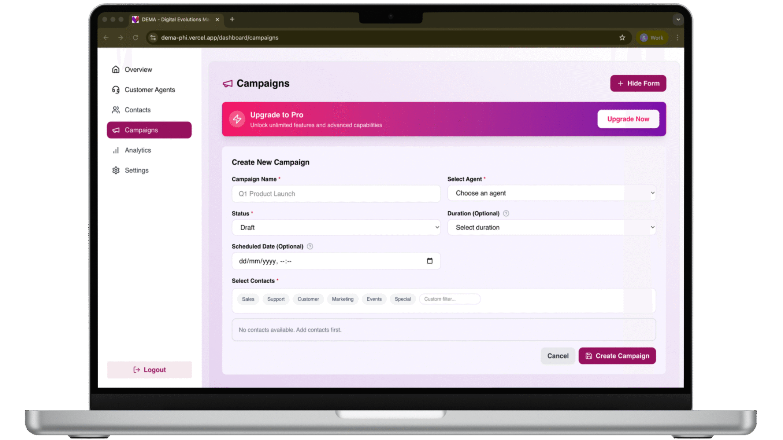 Stop managing interactions. Start growing relationships. Dimma handles 100% of your customer interactions, sales, management and operations via calls and WhatsApp chats with human precision, turning every conversation into actionable revenue.